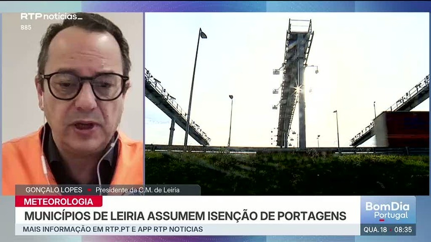 As portagens na A8 e A19 voltam a ficar isentas de pagamento, com os municípios do distrito de Leiria a assumir os encargos financeiros. O presidente da Câmara fala na necessidade de "reforço de circulação alternativa" e espera que as despesas sejam incluídas no pacote de recuperação da região, afetada pela tempestade Kristin.