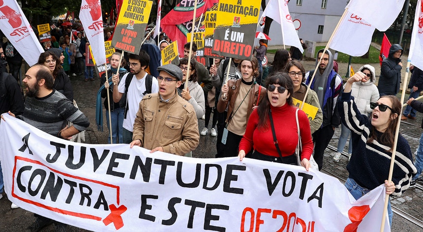 Em frente à Assembleia da República decorre esta quarta-feira manifestação contra o Orçamento do Estado. É um protesto marcado pela CGTP com o apoio do Partido Comunista por melhores condições de trabalho, salários e pensões.