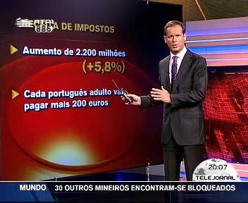 Na conferência de imprensa para apresentar as contas do Estado para o próximo ano, Teixeira dos Santos apontou a expectativa de um aumento de 20 por cento da factura com os juros da dívida pública, mais 1.050 milhões do que no corrente ano, atingindo os 6,3 mil milhões de euros.