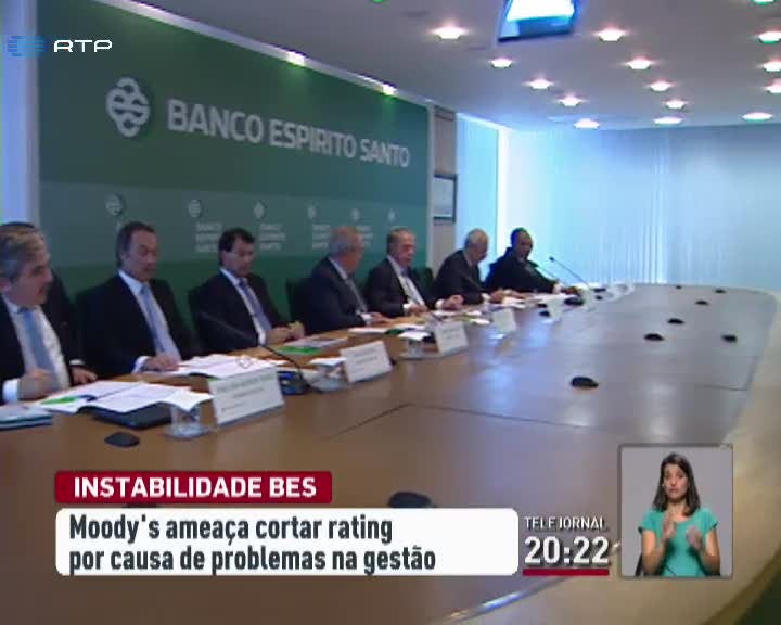 Os problemas de gestão no BES fizeram soar os alarmes na agência de notação financeira, que pode vir a cortar ainda mais o rating do banco, atualmente já no nível especulativo ou "lixo". A Moody's avisa que a Espírito Santo Financial Group também está sob revisão para descida de rating. A agência de notação teme um contágio das perdas da Espírito Santo International nas restantes estruturas do grupo. A decisão definitiva da Moody's vai ser tomada depois da assembleia geral do banco agendada para 31 de Julho. O ministro, Luís Marques Guedes, afasta os receios do perigo de contaminação da instabilidade no BES ao rating da República.