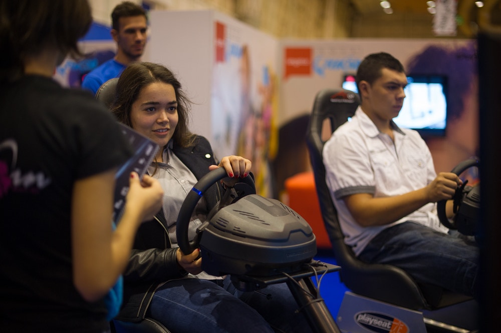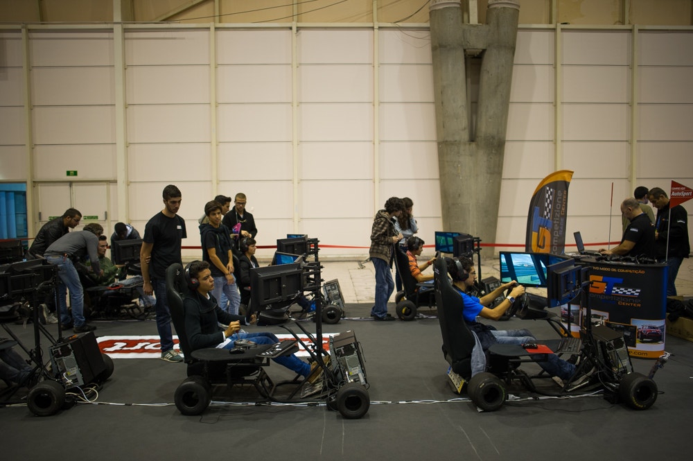 Mas não são só as consolas que marcam presença na feira, longe disso. Os simuladores de condução são uma das grandes atrações. “São carros como se fossem reais”, explica Carlos Barbosa, um dos promotores dos autódromos virtuais presentes no primeiro pavilhão da FIL. Garante que os utilizadores “sentem tudo a nível de físicas, mas o perigo não existe para eles”.