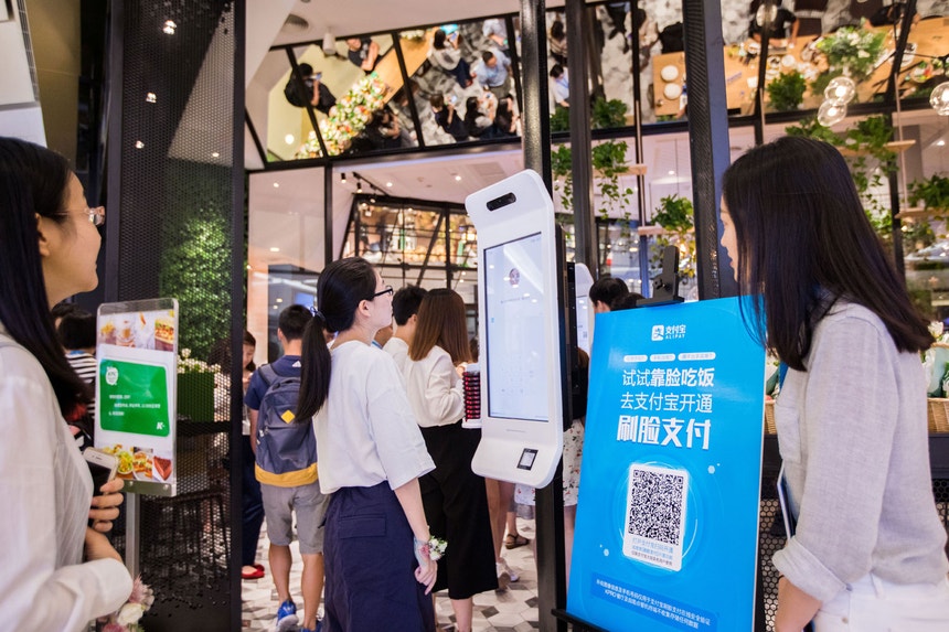 O Alipay, outra importante carteira digital na China, pertence ao gigante chinês de comércio eletrónico Alibaba.