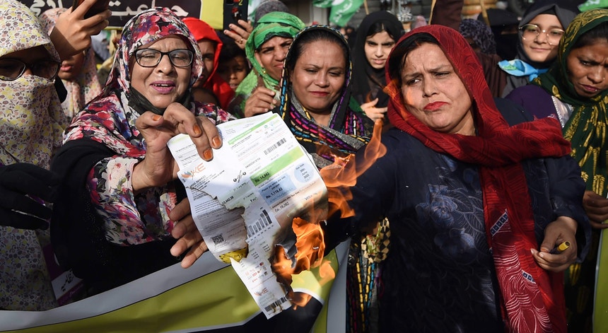 Paquistão. Manifestantes queimam contas de eletricidade inflacionadas