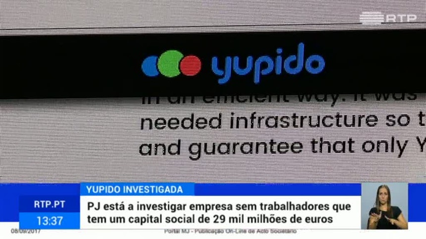 Economia Polícia Judiciária investiga a Yupido A Polícia Judiciária está a investigar a Yupido. RTP / VER MAIS Uma misteriosa empresa que declara ter um capital social de 29 mil milhões de euros, o maior em Portugal.Contudo, não tem trabalhadores. PUB