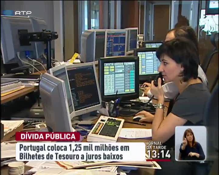 Portugal colocou hoje um total de mil e 250 milhões de euros em títulos do Tesouro, a juros mais baixos do que nos leilões anteriores. De acordo com a Agência de Gestão da Tesouraria e da Dívida Pública, 320 milhões de euros foram colocados a seis meses, a uma taxa de juro média de 0,438 por cento. A procura para este leilão, a seis meses, atingiu mil e 480 milhões de euros. No prazo de 12 meses, foram colocados 930 milhões de euros, a uma taxa de 0,602 por cento. Neste caso, a procura chegou aos mil e 560 milhões.