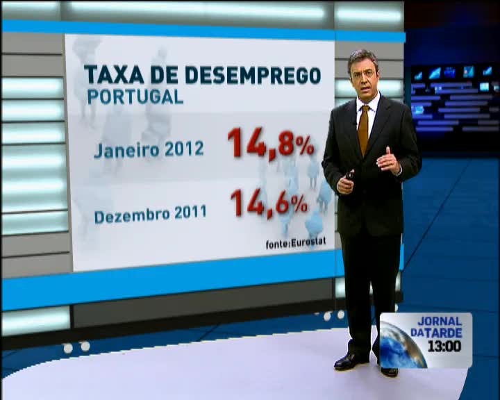 Portugal tem já a terceira taxa de desemprego mais elevada da União Europeia, tendo alcançado a da Irlanda. Os dados hoje revelados pelo Eurostat mostram uma subida para os 14,8 por cento em janeiro, mais duas décimas do que em dezembro de 2011. Só a Espanha, com 23,3 e a Grécia, com 19,9 por cento, é que ultrapassam as taxas registadas em Portugal e na Irlanda. Na zona euro e no conjunto da União Europeia, o desemprego subiu 0,1 por cento entre dezembro e janeiro.