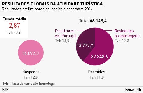 Segundo os dados revelados pelo INE, em 2014, o turismo cresceu mais de 10 por cento. Os números mostram uma recuperação do mercado interno, invertendo a tendência de queda dos últimos anos, altura em que a crise dificultou as "escapadinhas" dos portugueses.