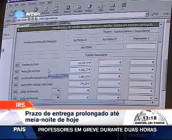 O Ministério das Finanças anunciou o prolongamento por mais 24 horas da entrega das declarações electrónicas sem multa . O ministério anunciou ainda o alargamento do prazo de entrega das declarações de IRC, do dia 29, para o dia 31 de Maio.