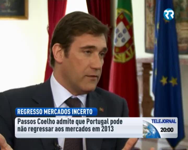 Primeiro-ministro admite que Portugal pode não regressar aos mercados em 2013