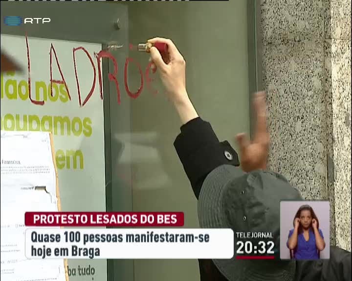 Quase cem lesados do BES manifestaram-se esta quinta-feira em Braga. Percorreram os balcões do Novo Banco do centro da cidade e tentaram invadir as instalações do Banco de Portugal.
