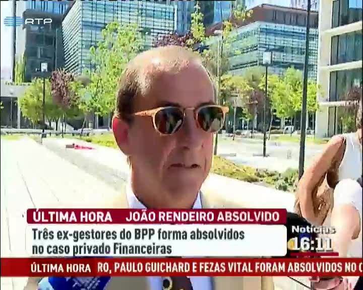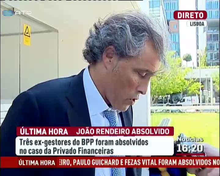O antigo presidente do Banco Privado Português (BPP), João Rendeiro, já reagiu à absolvição do crime de burla qualificada no processo Privado Financeiras, salientando que a Justiça é feita nos tribunais e não na comunicação social. Os arguidos estavam acusados pelo Ministério Público, em coautoria, de burla qualificada, crime com uma moldura penal de dois a oito anos de prisão.
