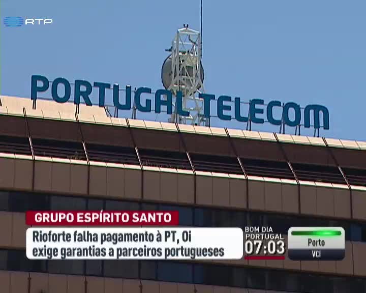 A Rioforte falhou o pagamento de 847 milhões de euros à PT. A empresa do grupo Espírito Santo tinha até à meia-noite para pagar a principal tranche do empréstimo de quase 900 milhões. A PT e a OI estão a negociar uma garantia para cobrir a dívida em atraso, sem alterar os termos da fusão das empresa. É quase certo que a OI deverá receber parte dos ativos da PT na nova empresa.