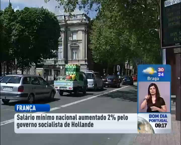 O presidente francês aumentou o salário mínimo em 2%, a França passa a ter o segundo salário mínimo mais alto da Europa, a seguir ao Luxemburgo. A medida vai afectar um milhão e 600 mil trabalhadores a tempo inteiro e um quarto dos que trabalham em part-time. A subida entra em vigor já a partir de 1 de julho e é uma promessa eleitoral que François Hollande cumpre.