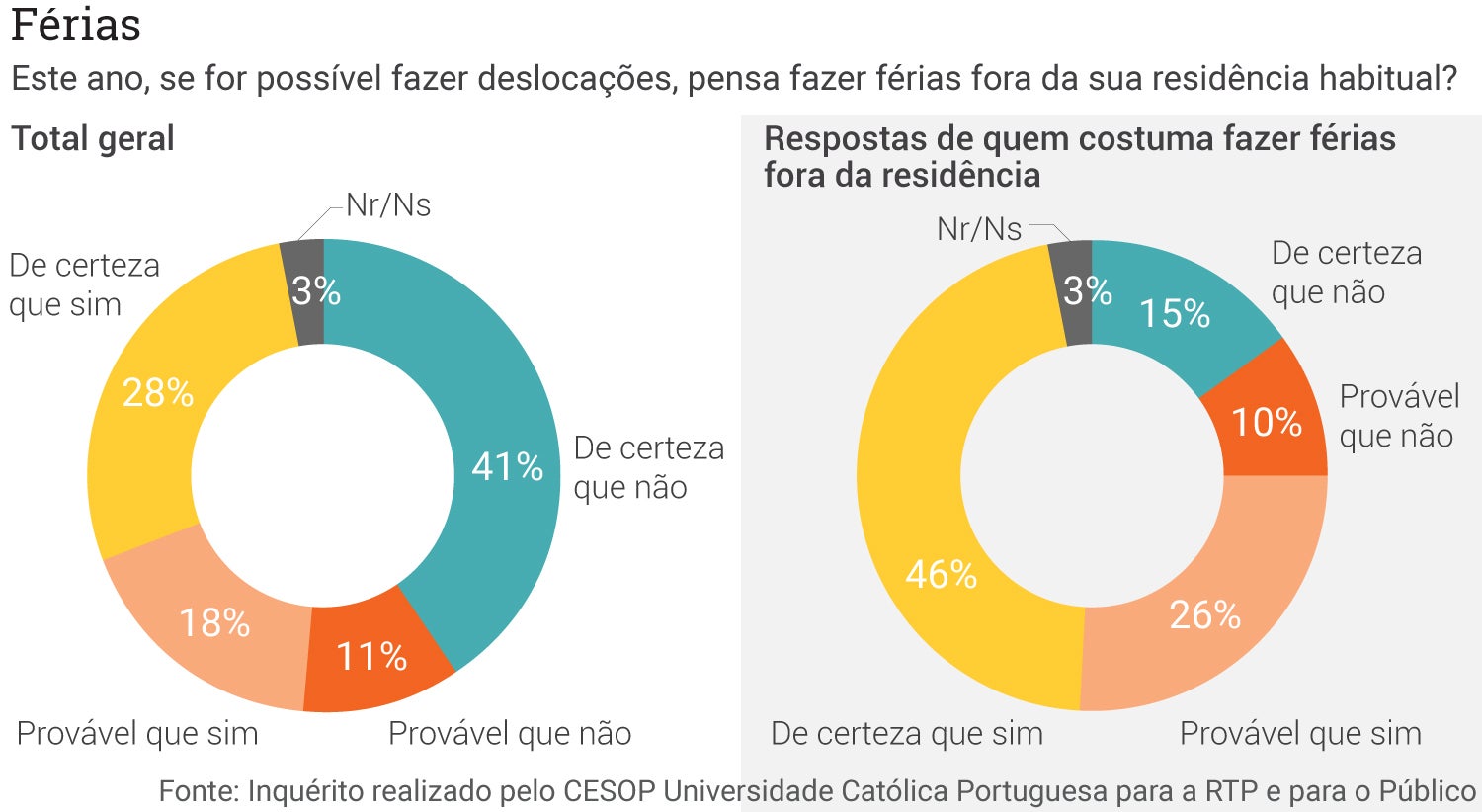 Apenas dez por cento afirmam que provavelmente não irão fazer férias fora da residência habitual e 15 por cento excluem de todo essa hipótese.