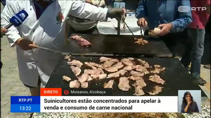 Os suinicultores portugueses estão concentrados para um churrasco em forma de protesto.