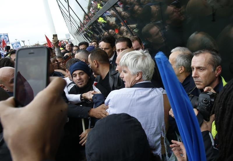 O presidente da Air France, Frédéric Gagey, saiu precipitadamente do local. O diretor de Recursos Humanos, Xavier Broseta, foi rodeado pelos manifestantes e acabou de tronco nu e a ser escoltado para fora do local por seguranças. O responsável pelos voos de longo curso, Pierre Plissonnier, foi igualmente escoltado para fora do local.