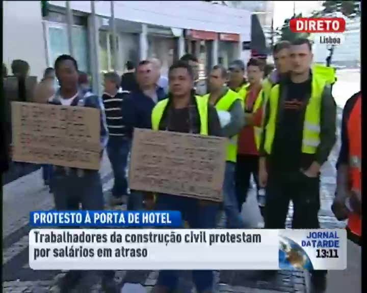 Trabalhadores da Construção Civil estão em protesto à porta de um hotel em Lisboa que acusam de não pagar as obras que foram realizadas.