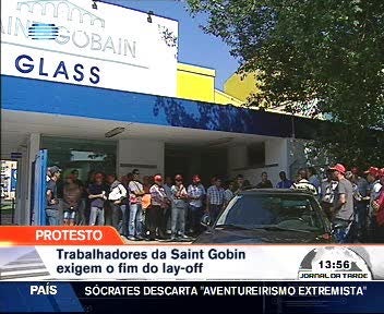 Os funcionários reuniram-se à porta da empresa, na Póvoa de Santo Adrião. A administração da Saint Gobin mandou, há cinco meses, parar o principal forno da fábrica. Uma medida para vigorar até Outubro.
