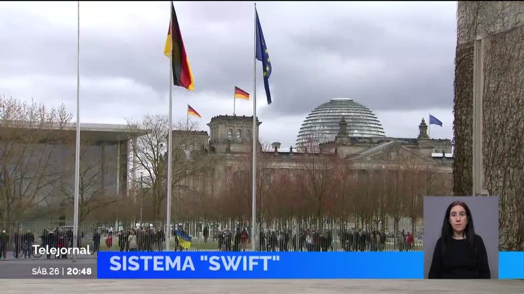 A União Europeia decide domingo se a Rússia é excluída do sistema Swift, a plataforma de mensagens entre bancos a nível mundial que permite transações financeiras de forma rápida e segura.