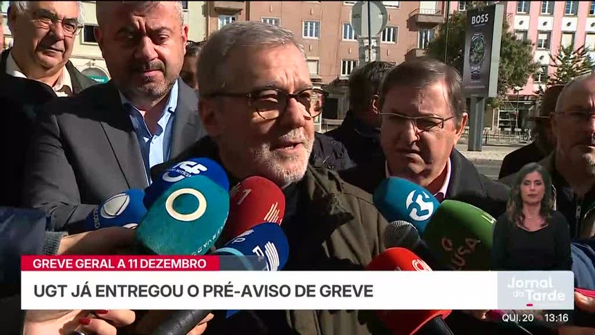 "Entregámos um pré-aviso de greve, de acordo com a decisão dos órgãos da UGT para 11 de dezembro. Até ao dia 11, estamos totalmente disponíveis para o diálogo e negociação. Estaremos totalmente disponíveis para nos sentar à mesa", afirmou o secretário-geral da UGT, Mário Mourão, que falava aos jornalistas, após a entrega do pré-aviso de greve geral, no ministério do Trabalho, em Lisboa.