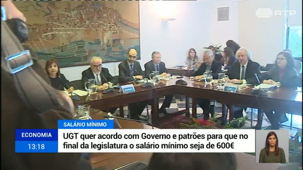 A UGT quer que o salário mínimo seja de 600 euros no final da legislatura, em 2019. Foi a proposta que fez a patrões e ao Governo. A União de Sindicatos até aceita que no próximo ano fique abaixo dos 557 euros, propostos pelo Governo, mas com condições.
