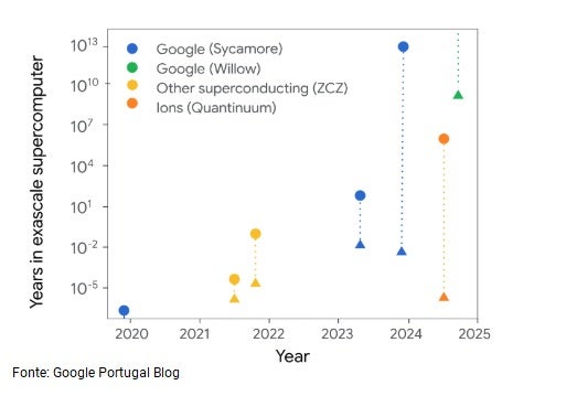 A avaliação do Willow, de acordo com os investigadores da Google, ultrapassa um dos supercomputadores clássicos mais potentes do mundo, o Frontier.