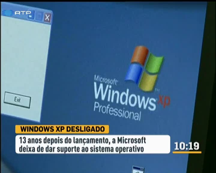 A empresa Microsoft deixa a partir de hoje de dar suporte ao sistema operativo Windows XP. A partir de agora, qualquer falha fica por resolver e os peritos aconselham a uma atualização do software. Os avisos da Microsoft começaram a ser feitos há um ano e meio. Muitas empresas continuam a usar o sistema. E são esperados mais ataques de pirataria. Há um maior risco de segurança para o Windows XP, três anos depois do lançamento.