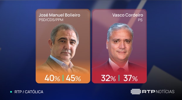 A essa hora, a coligação PSD/CDS-PP/PPM liderava a votação, com 44,32% dos votos, seguida pelo PS, com 37,07%.