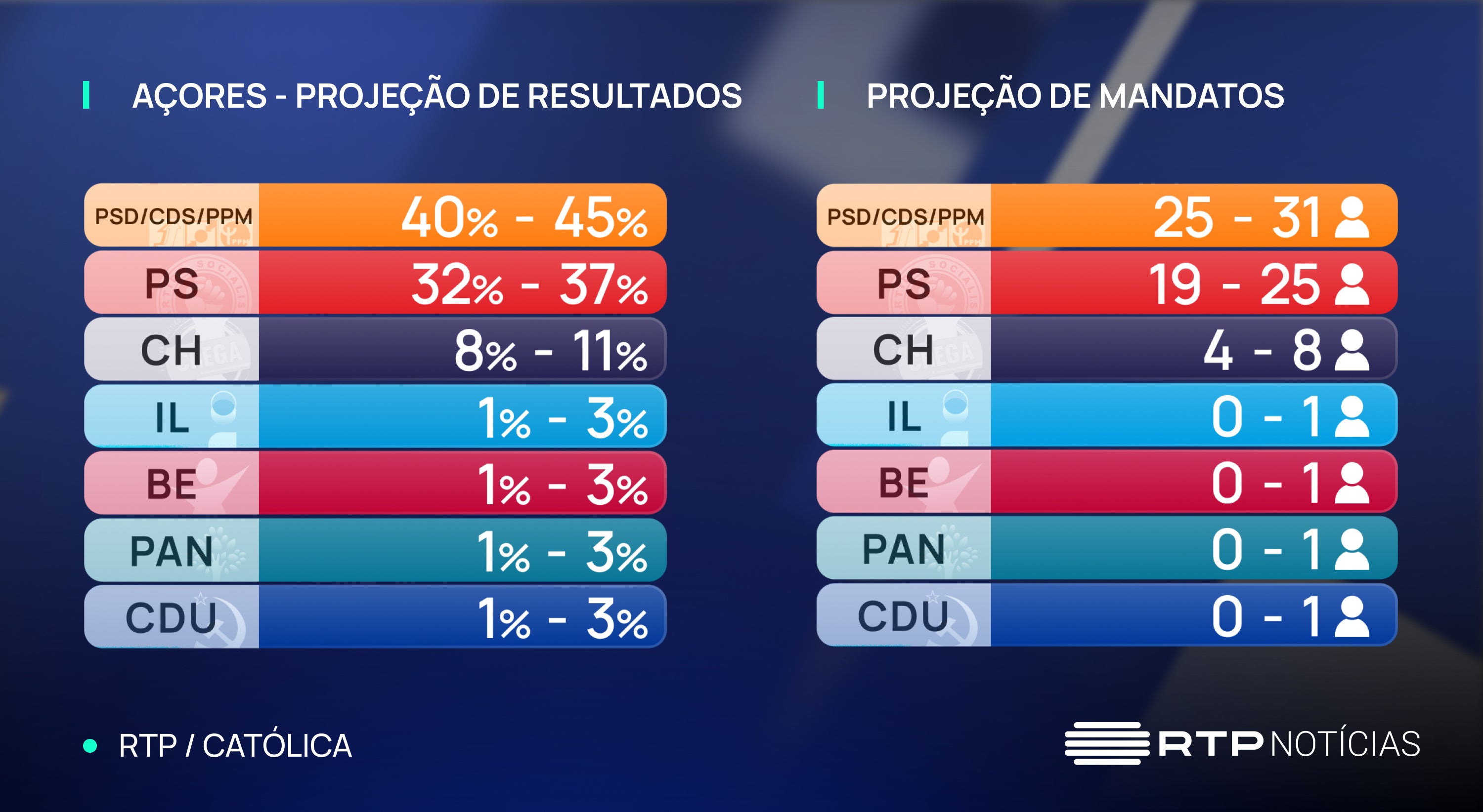 Chega/Açores canta vitória após projeção da RTP e Universidade Católica