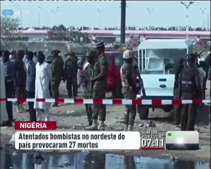 No nordeste da Nigéria, um duplo atentado provocou a morte de 27 pessoas. Os dois ataques à bomba aconteceram com horas de diferença em duas cidades distintas, ambos juntos a estações rodoviárias. Estes novos ataques surgem a cinco semanas das eleições gerais na Nigéria. O Governo local reforçou recentemente o combate militar ao terrorismo do grupo radical islâmico Boko Haram.