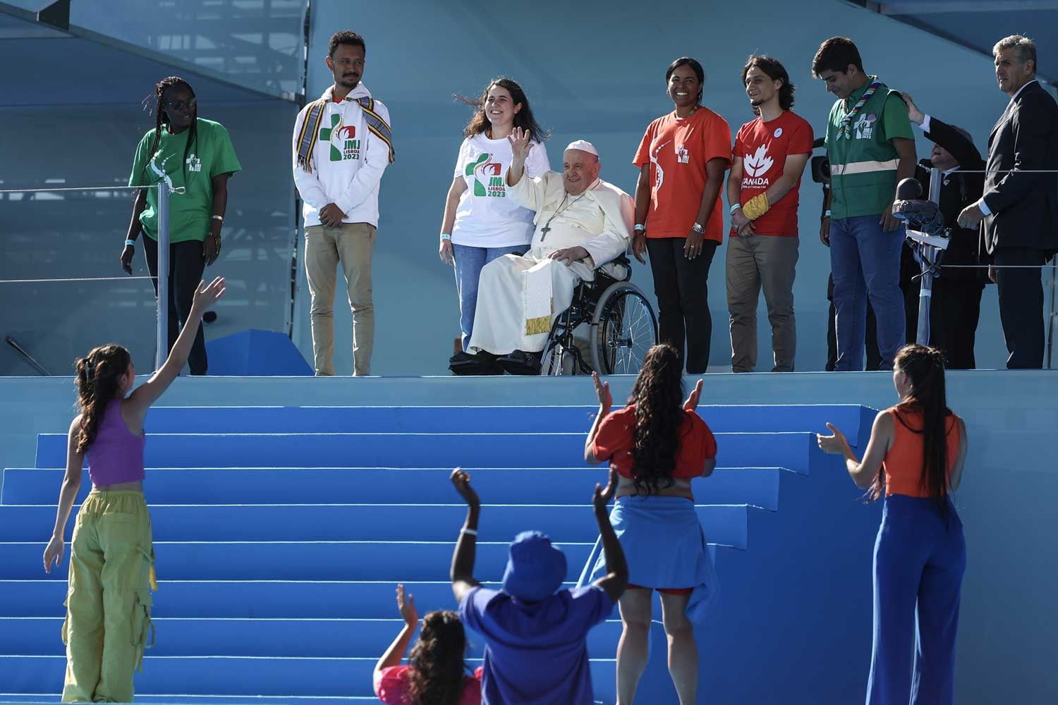 Papa Francisco sobe ao palco do Parque Eduardo VII para início da Cerimónia de Acolhimento
