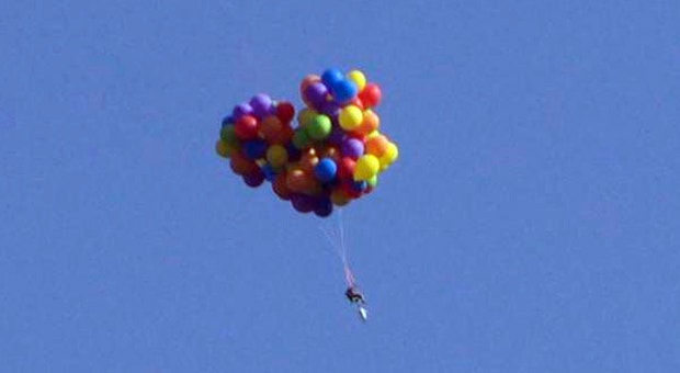 Voo em cadeira movida a balões vale prisão a canadiano