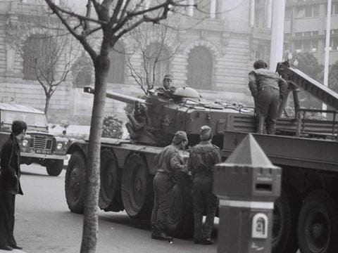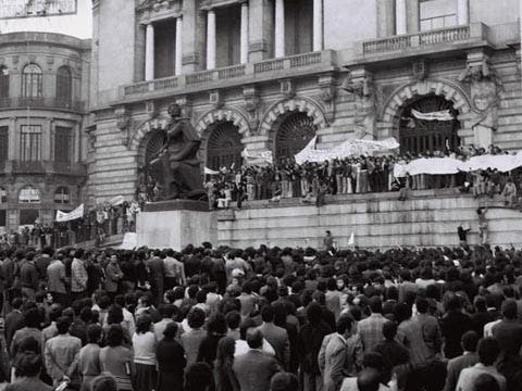 Outras manifestações começavam a ter lugar noutros pontos da cidade (na foto em cima, concentração em frente à Câmara Municipal), com cada vez mais pessoas a participarem. Mesmo assim, de pouco serviram as advertências dos militares ao chefe da polícia, porque "nesse mesmo momento, quando os militares do CIOE em escolta do capitão Castro Carneiro saíam das instalações dos CTT na rua de Ceuta, a polícia iniciou uma carga contra a multidão que já dava vivas ás Forças Armadas".