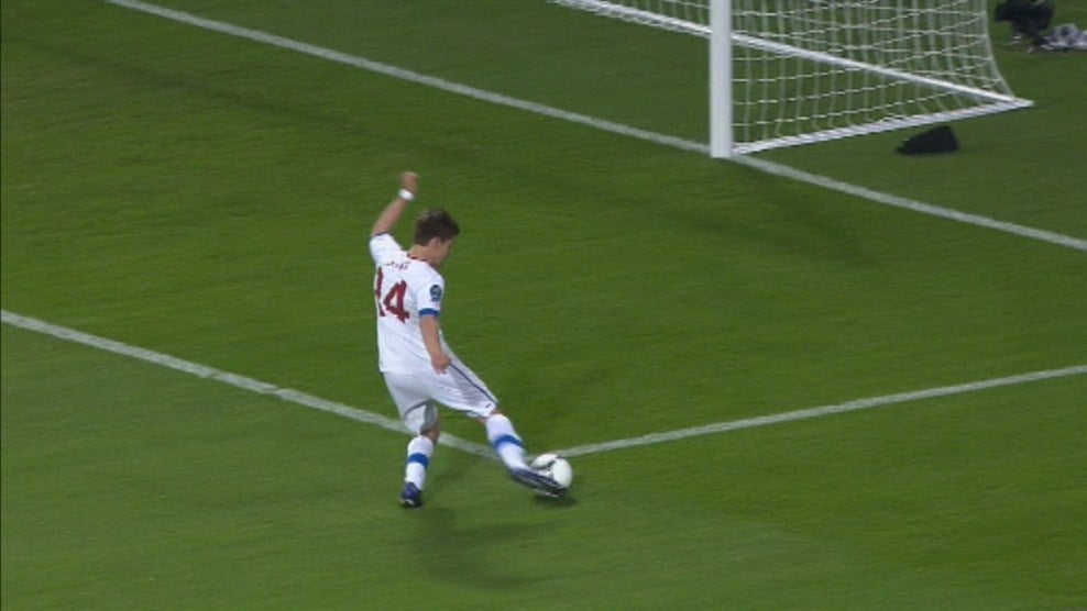 - Outra vez, Kerzhakov! Como é possível? O russo recebe, roda e tira Kadlec do caminho para disparar forte mas sem direção. Que mal!