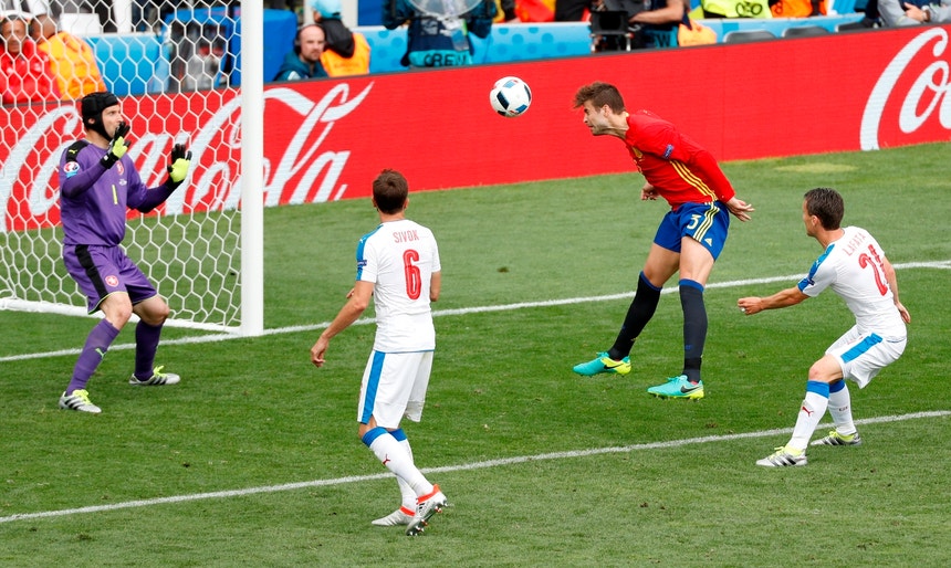 Espanha tentou muito, mas só a menos de cinco minutos do fim do jogo conseguiu o golo que permitiu aos Campeões da Europa em título levar de vencida a República Checa. Piqué, de cabeça, foi o protagonista do lance decisivo.