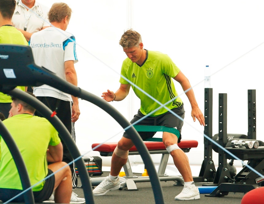 Schweinsteiger, que teve uma época difícil, devido a uma lesão em março nos ligamentos de um joelho, entrou no jogo dos quartos de final frente à Itália, em substituição do lesionado Sami Khedira, aos 16 minutos.