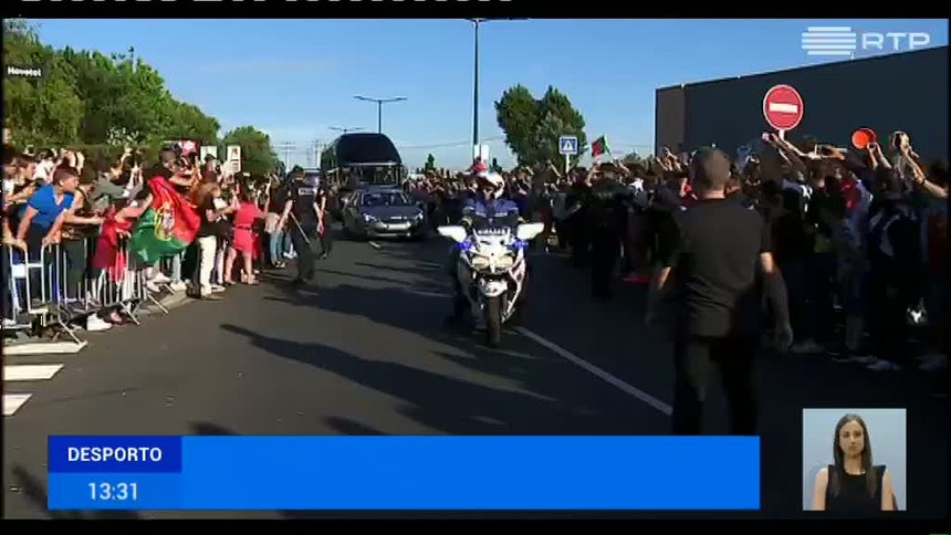 A selecção portuguesa foi ontem recebida por centenas de portugueses na chegada a Lens.
