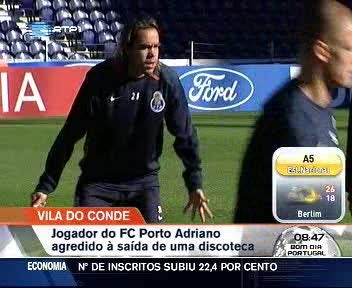 O jogador do Porto foi agredido à porta de uma discoteca em Vila do Conde. O brasileiro Adriano que está impedido de treinar com a equipa desde a época passada, dirigia-se ao automóvel, cerca das 6 da manhã de domingo, quando foi atacado por três homens.