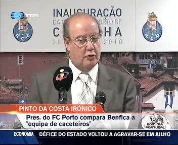 Pinto da Costa compara o Benfica a uma equipa de "caceteiros". Na inauguração da casa do FC Porto em Caminha, acusou ainda alguma comunicação social de querer "abater" o clube. O presidente portista disse mesmo que estão a ser encobertas coisas gravíssimas que se passam noutras equipas.