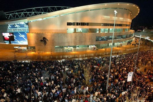 O arquiteto da obra foi Manuel Salgado, e a Junho de 2004 deu-se a estreia oficial do estádio: num jogo de má memória para os portugueses, a seleção nacional abriu o campeonato da Europa de 2004 com uma derrota por 2-1 frente à Grécia. Portugal viria a chegar à final mas perderia no confronto decisivo para a mesma seleção grega.
