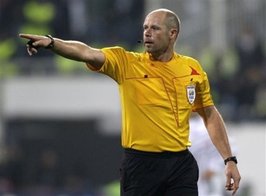 - Wenger discute com o árbitro, mas Martin Hansson acalma o treinador do Arsenal e manda seguir o jogo.