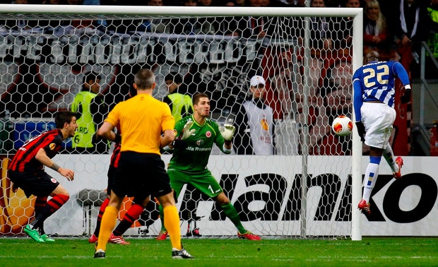 No último terço da primeira parte, o Eintracht de Frankfurt voltou a subir no terreno e a dominar. Aos 37 minutos chegou ao golo por intermédio de Aigner com a defesa do Porto a ficar mal na fotografia. Jung cruzou à vontade largo para Meier, de cabeça, amortecer para Aigner que com um toque subtil tirou a bola do alcance de Helton. A equipa de Paulo Fonseca tentou reagir por Danilo, mas foi o Eintracht de Frankfurt que esteve perto do segundo por Barnetta. Helton com uma excelente defesa evitou o golo do suíço da equipa alemã.