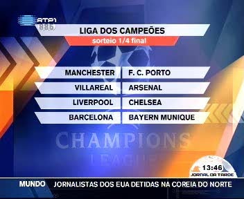 De antemão sabe-se também que o FC Porto vai encontrar nas meias-finais, se ultrapassar a poderosa equipa de Alex Ferguson, o vencedor da eliminatória entre Villareal e Arsenal.