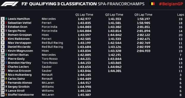 da Bélgica, dando à Mercedes aquela que é a 6ª pole consecutiva no circuito das