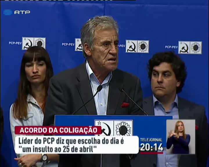 Jerónimo de Sousa diz que a data escolhida para o acordo da coligação PSD/CDS é um insulto ao 25 de Abril. Declarações feitas pelo líder do PCP num almoço da CDU, onde desafiou os militantes a encontrarem diferenças entre os programas do governo e do Partido Socialista.
