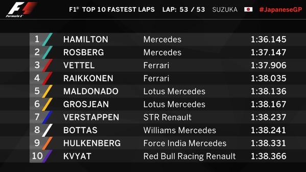 * Foi a sua 8ª vitória da época, a 3ª vitória no Japão (2007 em Fuji e 2014 em Suzuka).