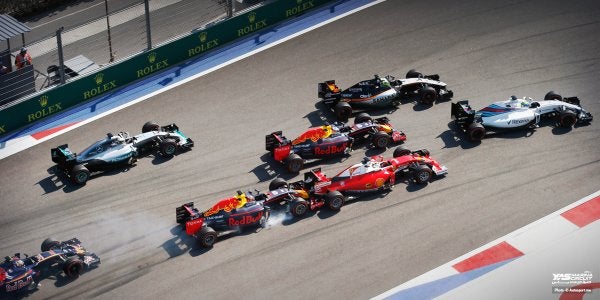 Em Sochi, Vettel foi precisamente a vítima. Kvyat, bateu na travagem para a 1ª curva e logo a seguir, bateu outra vez, acabando com o GP de Vettel prematuramente.