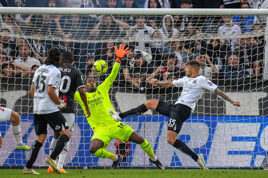 Sem o influente avançado português Rafael Leão, a recuperar de lesão, os milaneses sofreram dois golos na fase final do encontro, marcados pelo polaco Przemyslaw Wisniewski, aos 75 minutos, e por Salvatore Esposito, aos 85, e poderão terminar a época 2022/23 de forma penosa.
