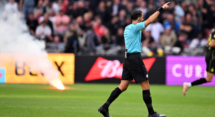 Ajax-Feyenoord suspenso devido ao lançamento de tochas para o relvado