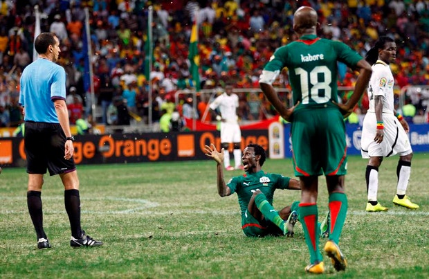 Jonathan Pitroipa, um dos melhores elementos do Burkina Faso, foi admoestado com dois cartões amarelos na partida com o Gana, o primeiro por mão na bola, aos 67 minutos, e o segundo por uma alegada simulação, aos 117, dentro da área, num lance muito contestado.